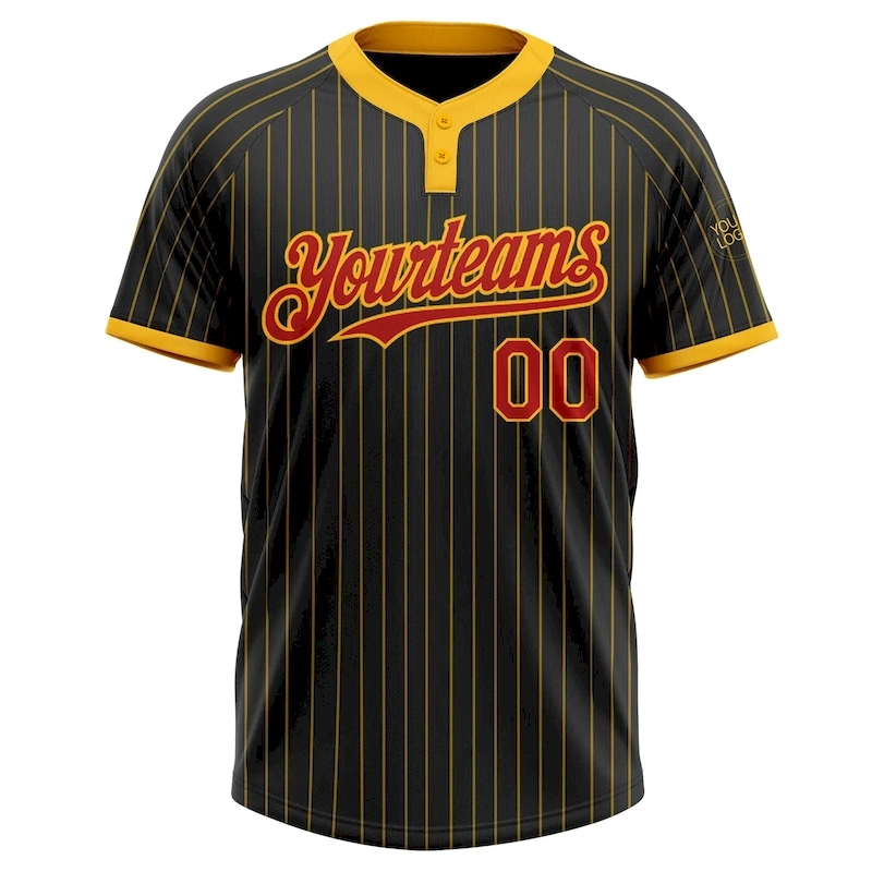 Custom Black Gold Pinstripe Red Two-Button Unisex Softball Jersey