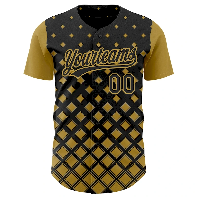 Custom Black Old Gold 3D Pattern Design Geometric Shapes Authentic Baseball Jersey