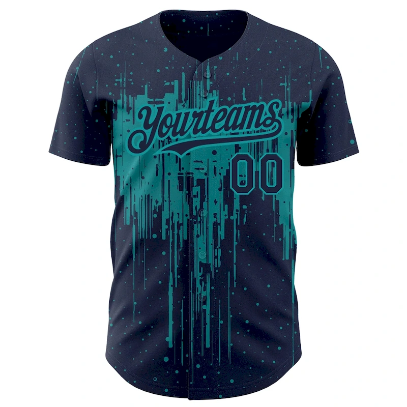 Custom Navy Teal 3D Pattern Design Dripping Splatter Art Authentic Baseball Jersey