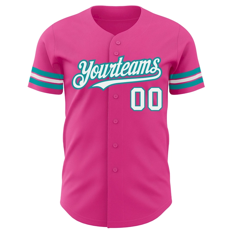 Custom Pink White-Teal Authentic Baseball Jersey